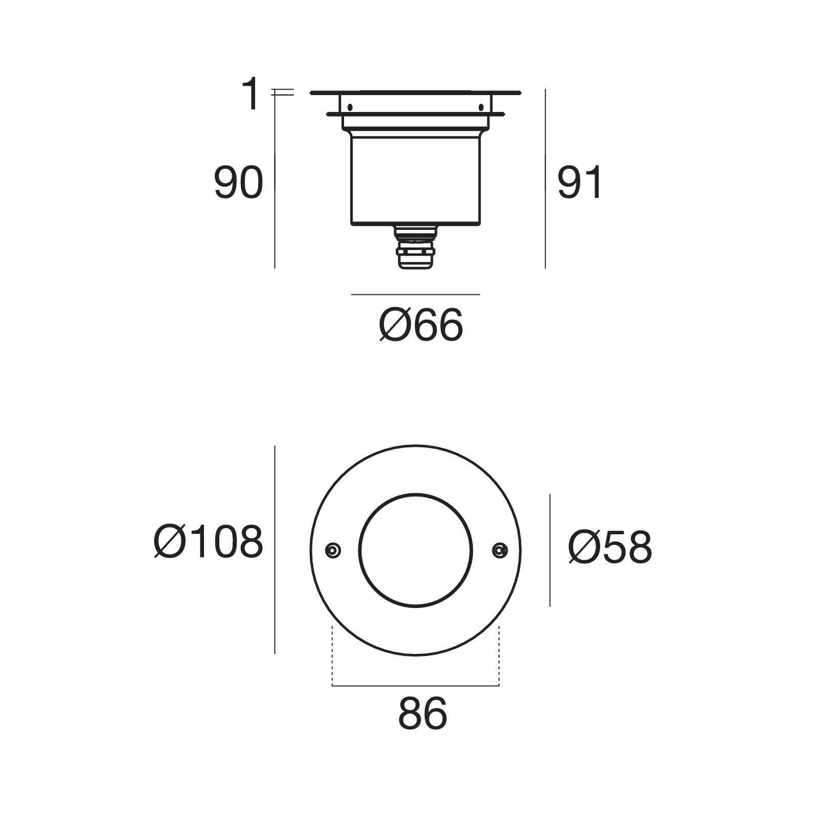 Diametro foro montaggio ad incasso:
