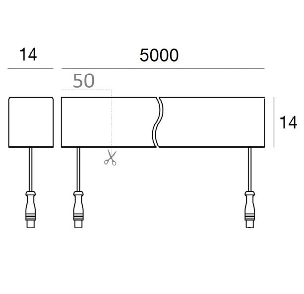 Led strip a singola emissione per applicazione outdoor. La sorgente luminosa LED, di colore bianco naturale, con distribuzione luminosa Diffusa, è composta da 700 LED topled, con una CCT 4000 K ed un CRI 85, il flusso luminoso della sorgente è di 6180 lm, con un'efficienza nominale di 123.6 lm/W. Il corpo dell'apparecchio, realizzato in tecnopolimero, presenta una finitura di colore bianco, il diffusore è prodotto in poliuretano. Il grado di protezione è IP67, il peso complessivo è di 1.365 kg. Il driver d’alimentazione non è fornito e deve essere ordinato separatamente. La potenza assorbita dall'apparecchio è di 50 W. Il cavo per l'alimentazione è incluso e presenta una lunghezza di 1(M)x0.25 m + 1(F)x0.25 m. L'apparecchio presenta una classe di isolamento III ed è installabile a parete, soffitto o pavimento. Conforme alla norma EN 60598-1 e alle relative prescrizioni particolari.