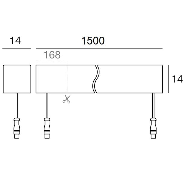 Led strip a singola emissione per applicazione outdoor. La sorgente luminosa LED, di colore bianco super caldo, con distribuzione luminosa Flood, è composta da 54 LED topled, con una CCT 2700 K ed un CRI 85, il flusso luminoso della sorgente è di 3278 lm, con un'efficienza nominale di 99.3 lm/W. Il corpo dell'apparecchio, realizzato in tecnopolimero, presenta una finitura di colore nero, il diffusore è prodotto in poliuretano. Il grado di protezione è IP67, il peso complessivo è di 1.710 kg. Il driver d’alimentazione non è fornito e deve essere ordinato separatamente. La potenza assorbita dall'apparecchio è di 33 W. Il cavo per l'alimentazione è incluso e presenta una lunghezza di 1(M)x0.25 m + 1(F)x0.25 m. L'apparecchio presenta una classe di isolamento III ed è installabile a parete, soffitto o pavimento. Conforme alla norma EN 60598-1 e alle relative prescrizioni particolari.