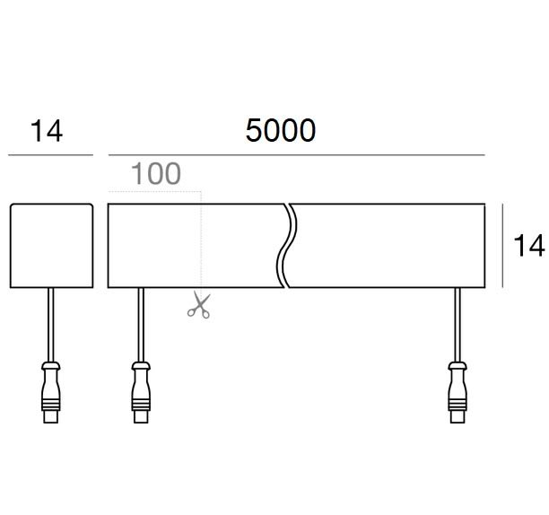Led strip a singola emissione per applicazione outdoor. La sorgente luminosa LED, di colore bianco super caldo, con distribuzione luminosa Diffusa, è composta da 700 LED topled, con una CCT 2700 K ed un CRI 85, il flusso luminoso della sorgente è di 5300 lm, con un'efficienza nominale di 106.0 lm/W. Il corpo dell'apparecchio, realizzato in tecnopolimero, presenta una finitura di colore bianco, il diffusore è prodotto in poliuretano. Il grado di protezione è IP67, il peso complessivo è di 1.365 kg. Il driver d’alimentazione non è fornito e deve essere ordinato separatamente. La potenza assorbita dall'apparecchio è di 50 W. Il cavo per l'alimentazione è incluso e presenta una lunghezza di 1(M)x0,25 m 1(F)x0,25 m. L'apparecchio presenta una classe di isolamento III ed è installabile a parete, soffitto o pavimento. Conforme alla norma EN 60598-1 e alle relative prescrizioni particolari.