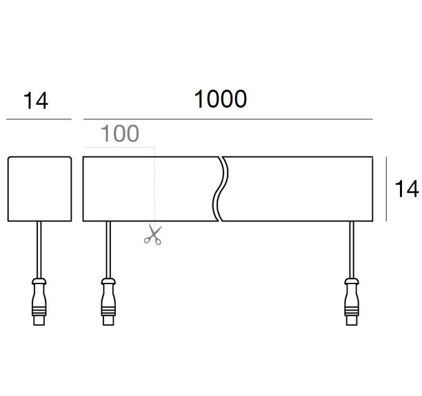 Led strip a singola emissione per applicazione outdoor. La sorgente luminosa LED, di colore bianco naturale, con distribuzione luminosa Diffusa, è composta da 140 LED topled, con una CCT 4000 K ed un CRI 85, il flusso luminoso della sorgente è di 1236 lm, con un'efficienza nominale di 123.6 lm/W. Il corpo dell'apparecchio, realizzato in tecnopolimero, presenta una finitura di colore bianco, il diffusore è prodotto in poliuretano. Il grado di protezione è IP67, il peso complessivo è di 0.103 kg. Il driver d’alimentazione non è fornito e deve essere ordinato separatamente. La potenza assorbita dall'apparecchio è di 10 W. Il cavo per l'alimentazione è incluso e presenta una lunghezza di 1(M)x0,25 m 1(F)x0,25 m. L'apparecchio presenta una classe di isolamento III ed è installabile a parete, soffitto o pavimento. Conforme alla norma EN 60598-1 e alle relative prescrizioni particolari.