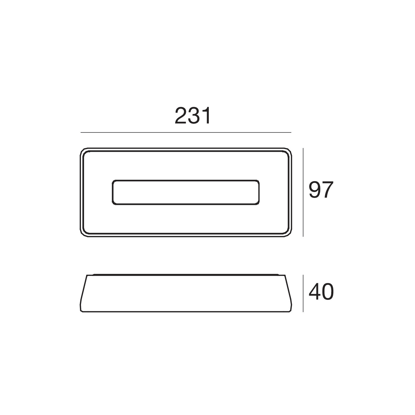 Lampada a parete a singola emissione per applicazione outdoor. La sorgente luminosa LED, di colore bianco caldo, con distribuzione luminosa Diffusa, è composta da 72 LED topled, con una CCT 3000 K ed un CRI 80, il flusso luminoso della sorgente è di 1246 lm, con un'efficienza nominale di 194.7 lm/W. Il corpo dell'apparecchio, realizzato in policarbonato uv resistente, presenta una finitura di colore bianco, ottenuta tramite verniciatura a liquido, il diffusore è prodotto in policarbonato uv resistente. Il grado di protezione è IP65, il peso complessivo è di 0.4 kg. La potenza assorbita dall'apparecchio è di 7.8 W. L'apparecchio presenta una classe di isolamento II ed è installabile a parete o soffitto. Conforme alla norma EN 60598-1 e alle relative prescrizioni particolari.