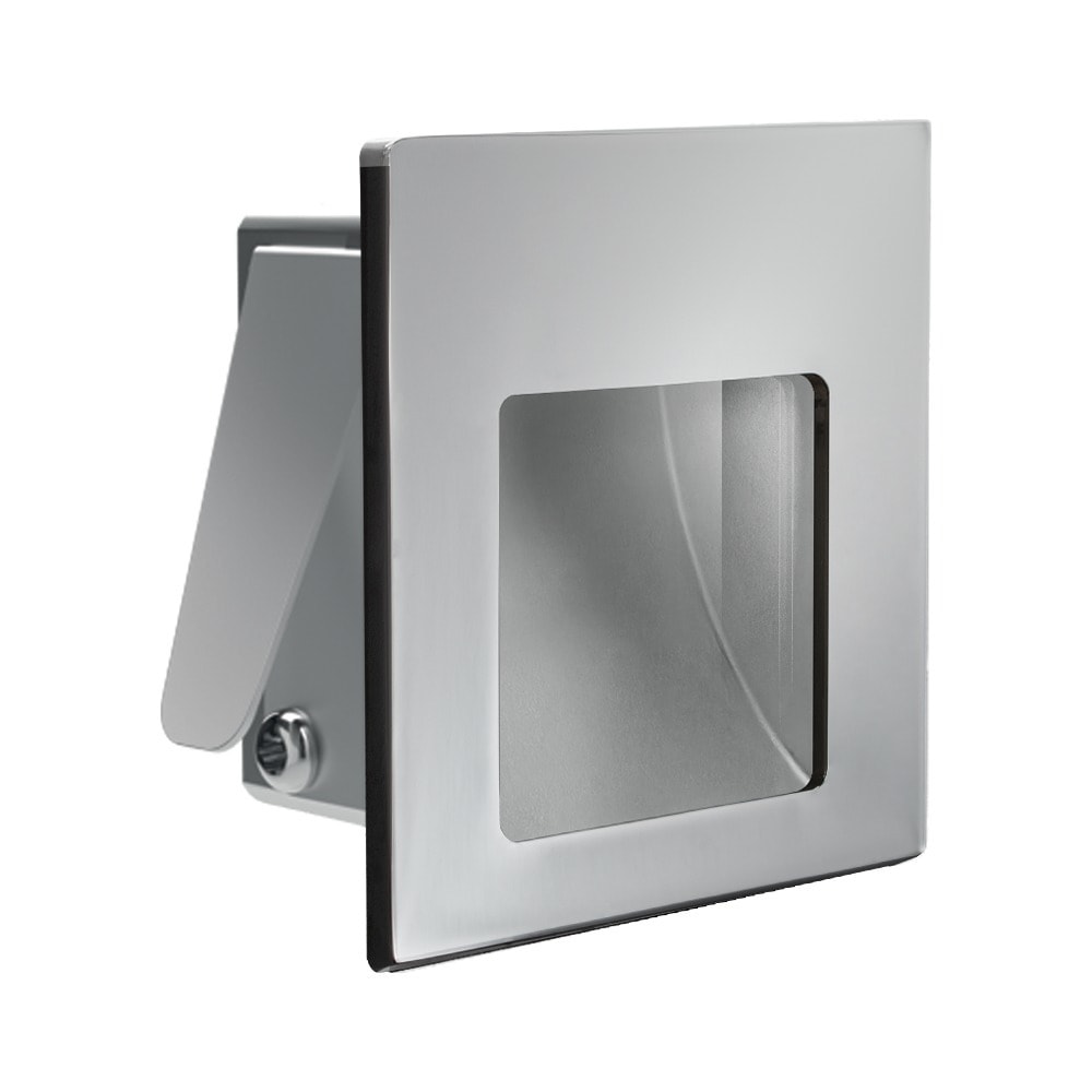 Lampada a parete a singola emissione per applicazione indoor. La sorgente luminosa LED, di colore bianco caldo, con distribuzione luminosa Asymmetric Wallwasher, è composta da 1 LED powerled, con una CCT 3000 K ed un CRI 80, il flusso luminoso della sorgente è di 154 lm, con un'efficienza nominale di 154.0 lm/W. Il corpo dell'apparecchio, realizzato in alluminio 5005, presenta una finitura di colore alluminio anodizzato, ottenuta tramite anodizzazione 20 µm, il diffusore è prodotto in vetro extra chiaro - temprato. Il grado di protezione è IP40, il peso complessivo è di 0.027 kg. Il driver d’alimentazione non è fornito e deve essere ordinato separatamente. La potenza assorbita dall'apparecchio è di 1 W. Il cavo per l'alimentazione è incluso e presenta una lunghezza di 0.170 m. L'apparecchio presenta una classe di isolamento III ed è installabile a parete, con foro quadrato con misura 42 x 42 mm (nel cartongesso). Conforme alla norma EN 60598-1 e alle relative prescrizioni particolari. CAM EDILIZIA: Affidamento del servizio di progettazione di interventi edilizi secondo quanto riportato dal ''decreto 23 giugno 2022'' pubblicato nella ''Gazzetta Ufficiale della Repubblica Italiana'' serie generale n°183 in vigore dal 18/10/2017 rispetta nello specifico i seguenti criteri: 2.4.3: Impianti di illuminazione per interni.