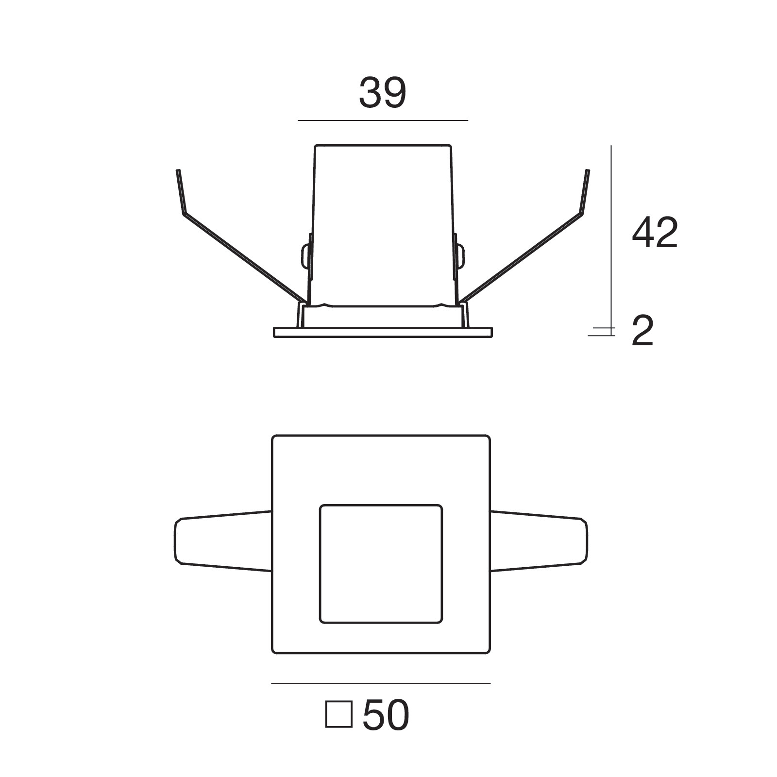 Lampada a parete a singola emissione per applicazione outdoor. La sorgente luminosa LED, di colore bianco caldo, con distribuzione luminosa Asymmetric Wallwasher, è composta da 1 LED powerled, con una CCT 3000 K ed un CRI 80, il flusso luminoso della sorgente è di 154 lm, con un'efficienza nominale di 154.0 lm/W. Il corpo dell'apparecchio, realizzato in alluminio pressofuso en ab - 46100, presenta una finitura di colore alluminio, il diffusore è prodotto in vetro extra chiaro - temprato. Il grado di protezione è IP65, il peso complessivo è di 0.027 kg. La potenza assorbita dall'apparecchio è di 1.5 W. Il cavo per l'alimentazione è incluso e presenta una lunghezza di 1 m. L'apparecchio presenta una classe di isolamento II ed è installabile a parete, con foro rettangolare con misura 40 x 45 mm (nel cartongesso). Conforme alla norma EN 60598-1 e alle relative prescrizioni particolari.