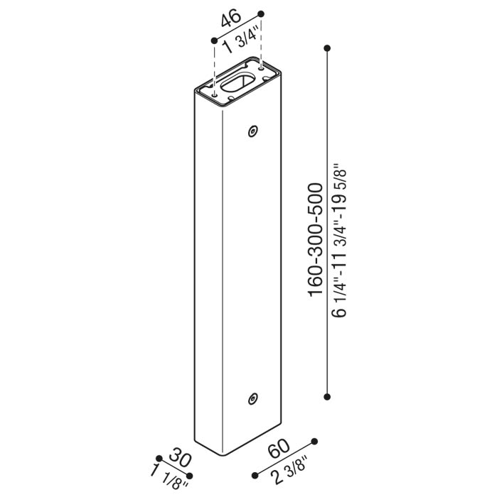 500 mm Bianco Possibilità di installazione Tag 110/210 su palo, altezza: 500 mm – 300 mm – 160 mm, predisposto per installazione a parete e soffitto. Palo in estruso di alluminio. Elevata resistenza all’ossidazione grazie al trattamento di passivazione a base di zircon