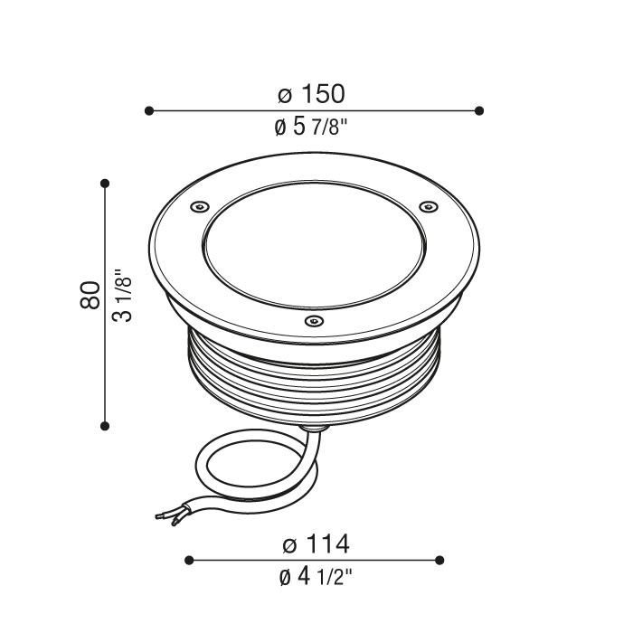 CNC 150 LED 2.7K 20W Inox 600mA Idoneo per incassi da terra ad uso carrabile e calpestabile, fissaggio mediante armatura da incasso fornita a parte. Prodotto finalizzato all’impiego di sorgenti luminose a LED per luce di accento e segnalazione. Ghiera in acciaio aisi 316L, corpo in allu Disponibile su richiesta versione a 24V.Disponibile su richiesta versione a 24V.