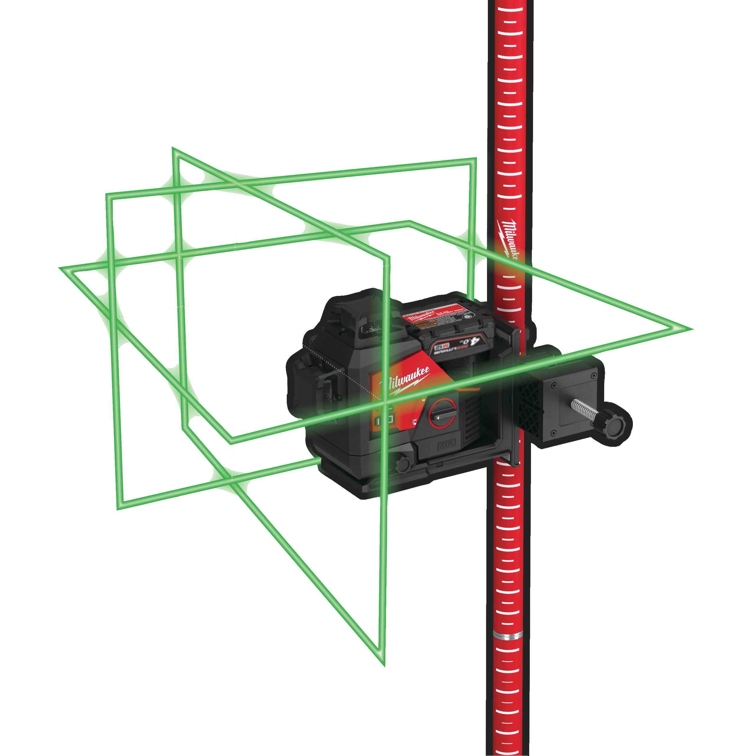 L'asta telescopica MILWAUKEE per laser, con estensione massima di 3.6 metri, è ideale per l'utilizzo di tutti i laser lineari anche con soffitti molto alti,La testa girevole a molla rende la configurazione semplice e veloce anche sulle superfici irregolari,Il morsetto a sgancio rapido, incluso con l'asta, si apre fino a 6.3 cm e può essere agganciato a materiali rotondi e quadrati,Compatibile con tutti i laser MILWAUKEE, che possono essere agganciati al morsetto tramite il magnete sul dorso,Segni di spunta per un facile posizionamento del laser
