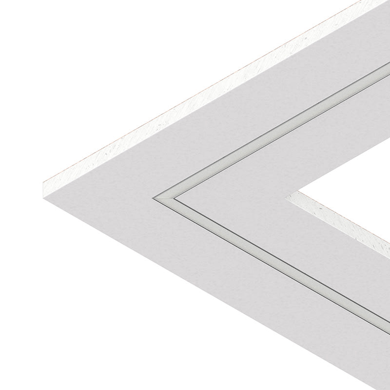 L-09: PROFILO ANGOLARE 90? per Strip LED tagliabile in opera, per realizzare linee di luce incassate nel cartongesso. Corpo in cartongesso di spessore 12,5 mm da lastra standard. Profilo dissipante in lega di alluminio anodizzato naturale e schermo di protezione in PMMA opale inclusi. Strip LED e alimentatore elettronico 24Vdc remoto da ordinare a parte. Non esporre a intemperie o luce solare diretta e non inserire in materiale isolante.