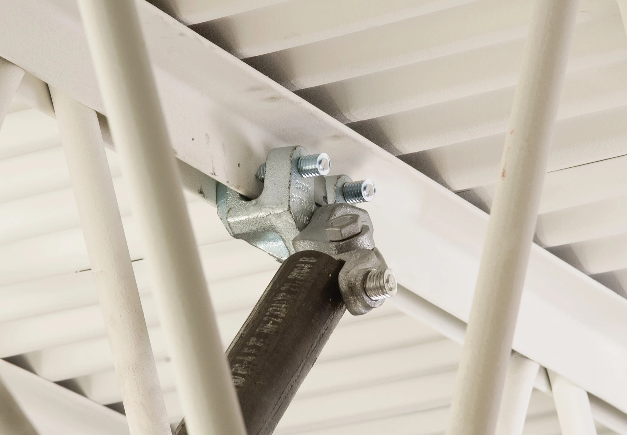 Staffe antisism. che si fissano dirett. a calcestruzzo, legno, o morsetti per travi o travi reticolari. Utilizz. per applicaz. con rinf. laterale e longitud. Per ancor. M20 1/2". Testa del bullone a rott. programm.per una facile ispezione.