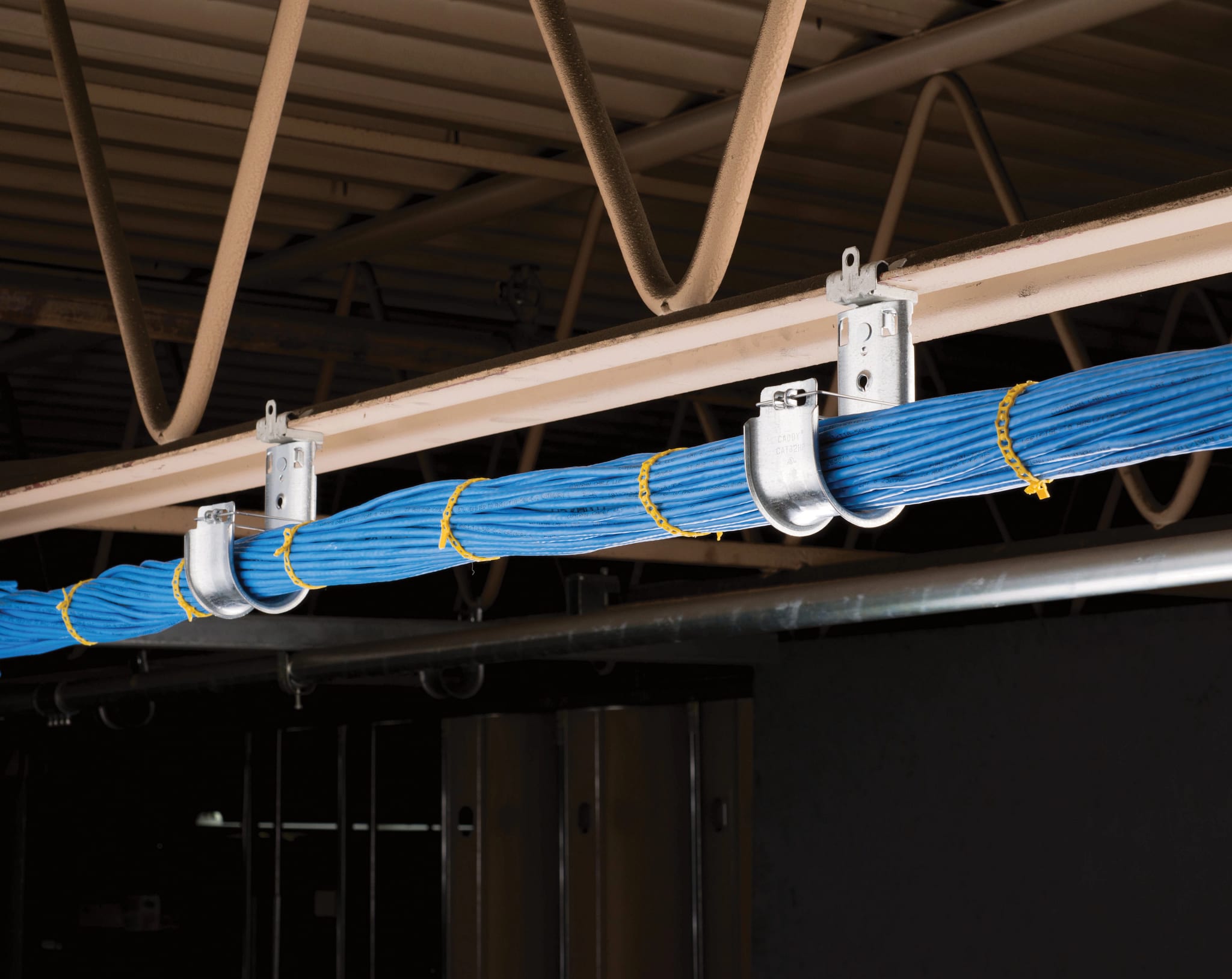 NVENT CADDY - Supporto a J Cat HP con clip per flangia da fissare a martello, girevole, 75 mm Diametro, 8–14 mm Flangia TO FL.