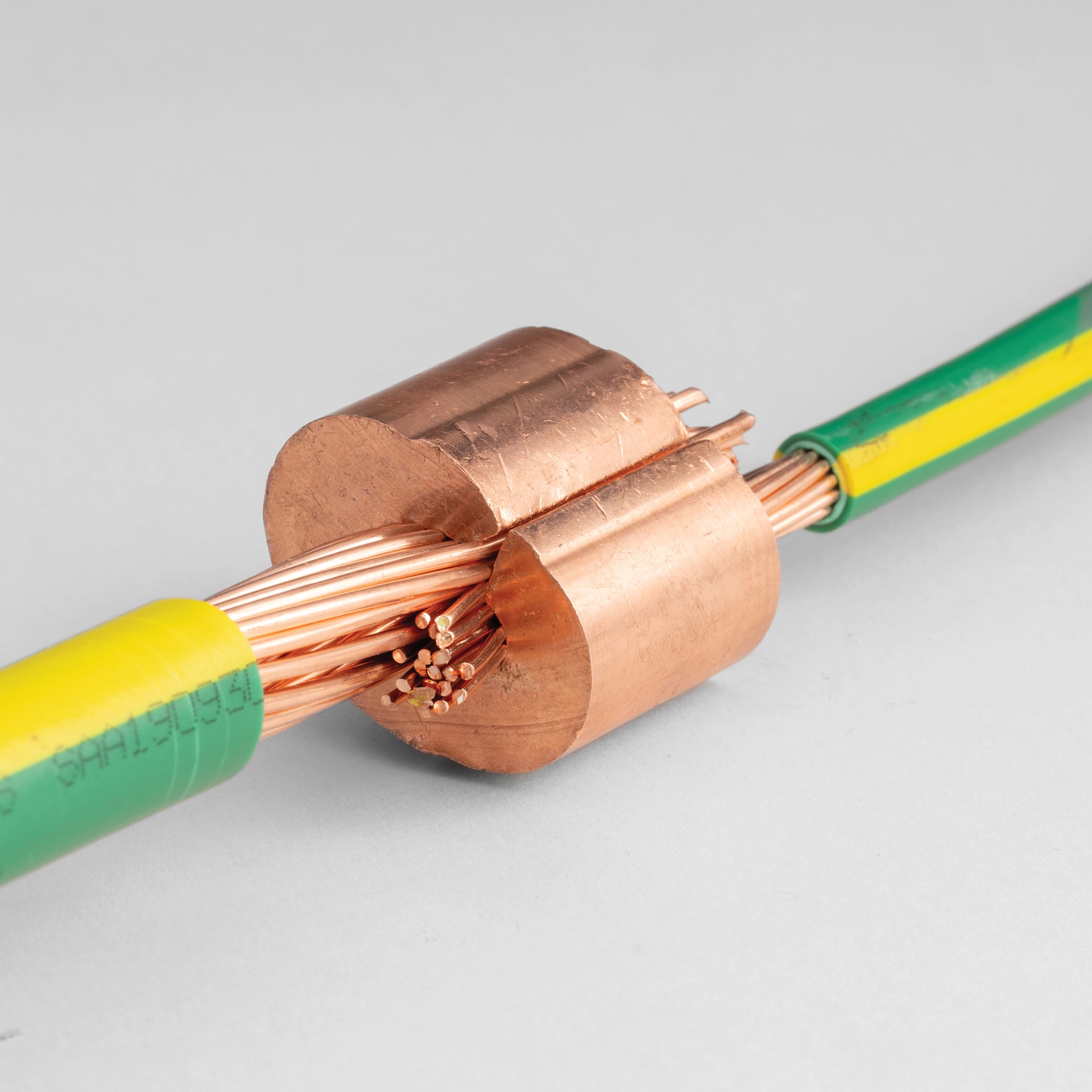 Connettore a crimpare in rame con grasso di rame pre-applicato per unire due conduttori in rame. C-crimp a doppio valore nominale principale 25-16mm2, matrice 16mm2