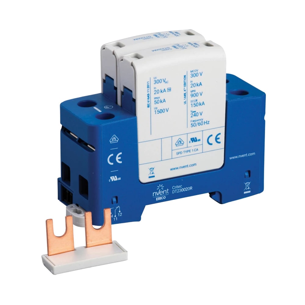 NVENT ERICO - DT2 classe II, modalità 1+0 Protezione contro le sovratensioni profilato DIN, 100kA, 350 V.
