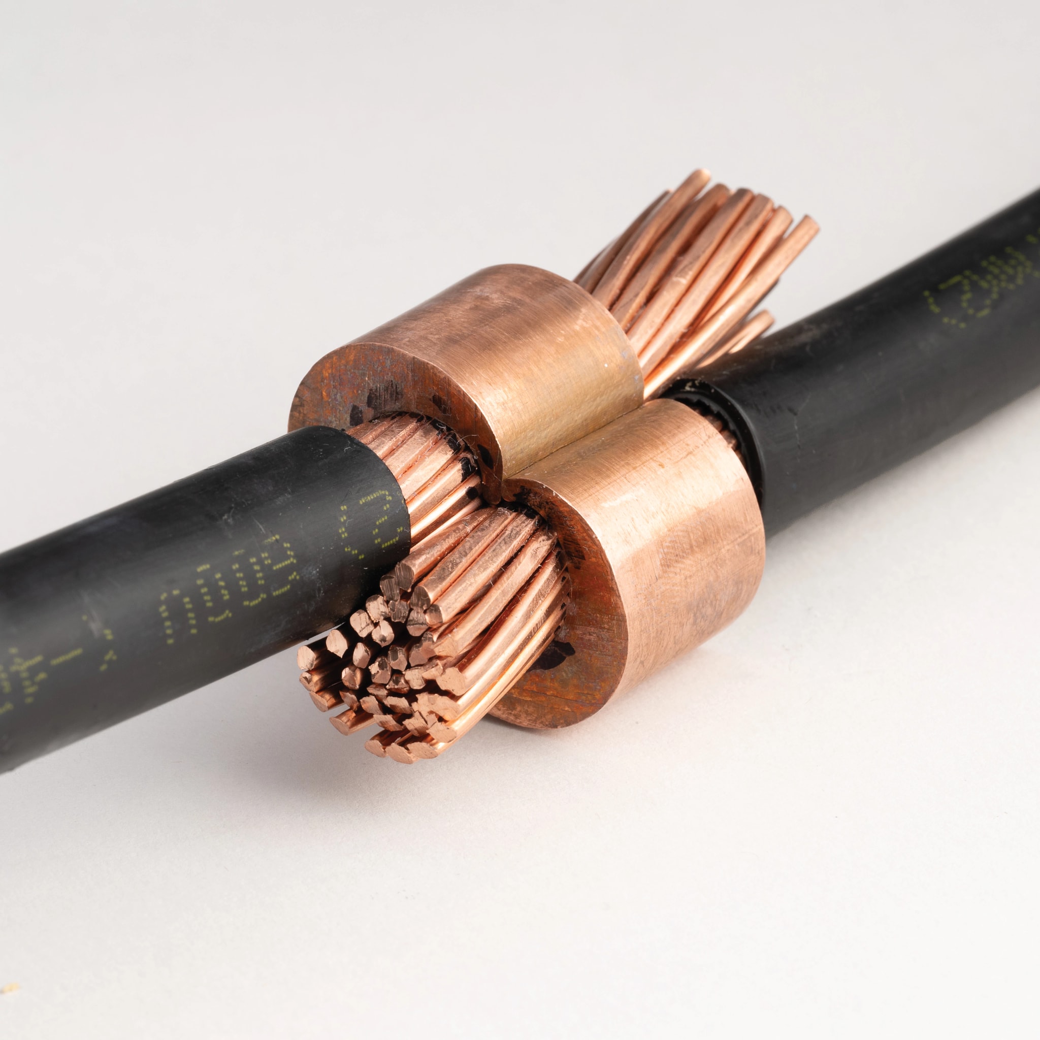 Connettore a crimpare in rame con grasso di rame pre-applicato per unire due conduttori in rame. E-crimp a doppio valore nominale principale 240-150 mm2, matrice 120-95 mm2 a trefoli