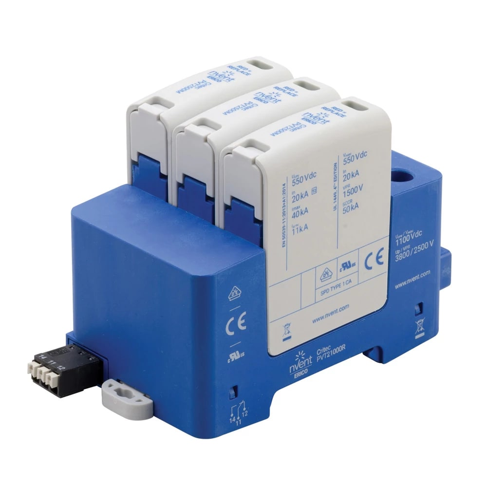 NVENT ERICO - PVT2 Protezione contro le sovratensioni fotovoltaiche Classe II, 1,100 V Ucpv PHOTOV SURGE PROT CLASS II,1,100 UC.