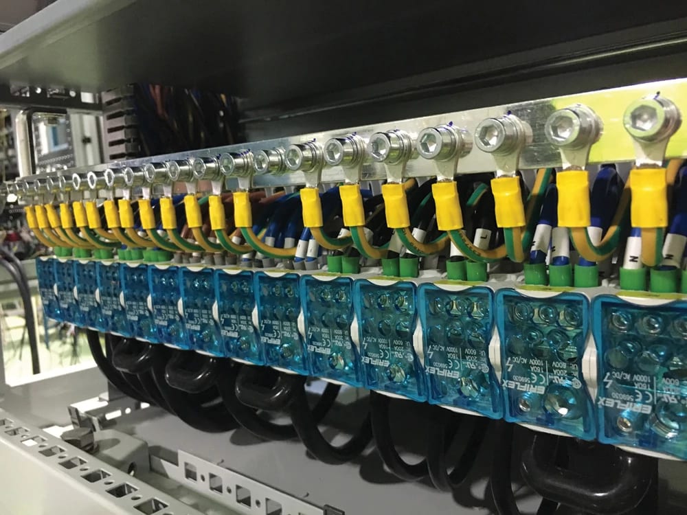NVENT ERIFLEX - Ripartitore unipolare da 500 A IEC per conduttori piatti a 9 cavi in alluminio UDF9C500AL. 569204