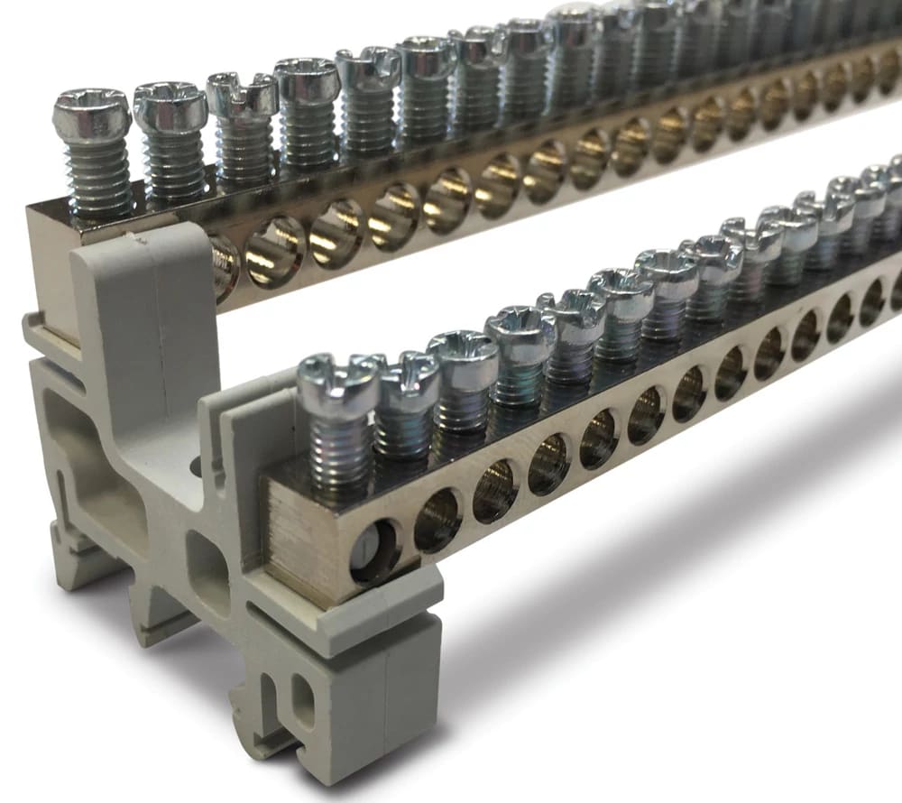 Staffa di montaggio della barra di distribuzione per la messa a terra. Supporto clip guida DIN EB142-166SUP2 per serie di barre di messa a terra e neutro EB-142/166.