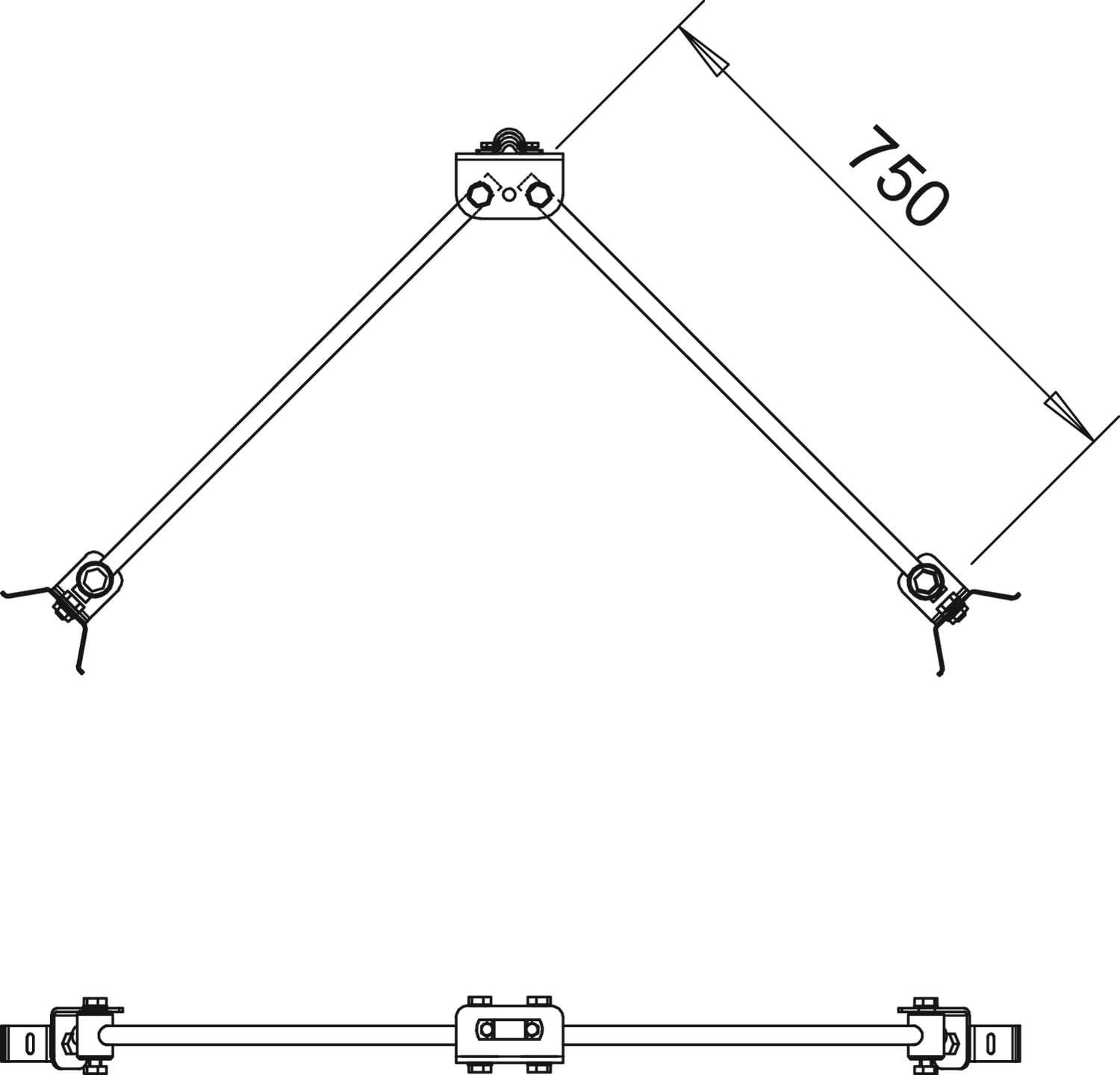 Fissaggio a V per tubo per un dispositivo di captazione isolato con distanza di sicurezza ved. • Montaggio su tubi con due fascette per tubi • Compresi espansore da 2 m e tenditore a vite • Per il rispetto della distanza di separazione dai componenti sotto tensione in conformità con VDE 0185-305-3 (IEC 62305-3) • Fissaggio di aste di captazione e conduttori tondi con diametro 8, 16 e 20 mm • Stabilizzati UV e resistenti agli agenti atmosferici • Intervallo di temperatura continuo da -50°C a +100°C • Fattore materiale km= 0,7