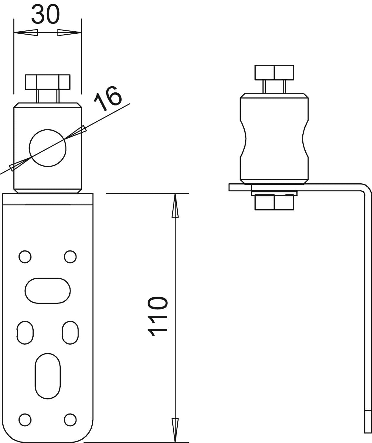 • Connessione a parete per aste GFK • Dimensione d Ø: 16 mm