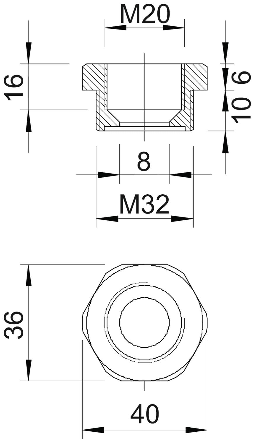 dimensione della filettatura metrica, filettatura interna - 20