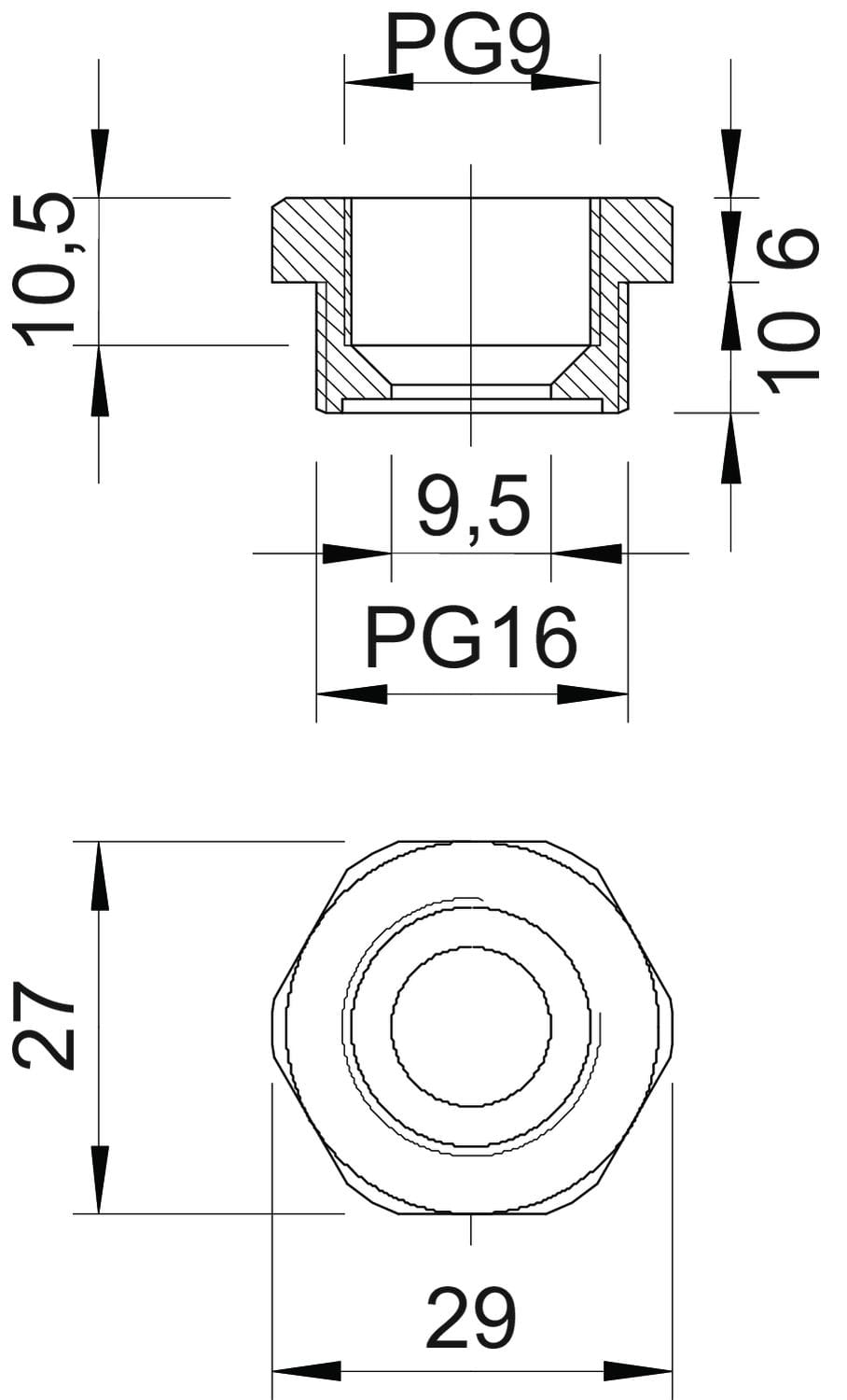 OBO BETTERMANN - 107 Riduzione PG16-PG9 Poliammide grigio chiaro RAL 7035. 2030748