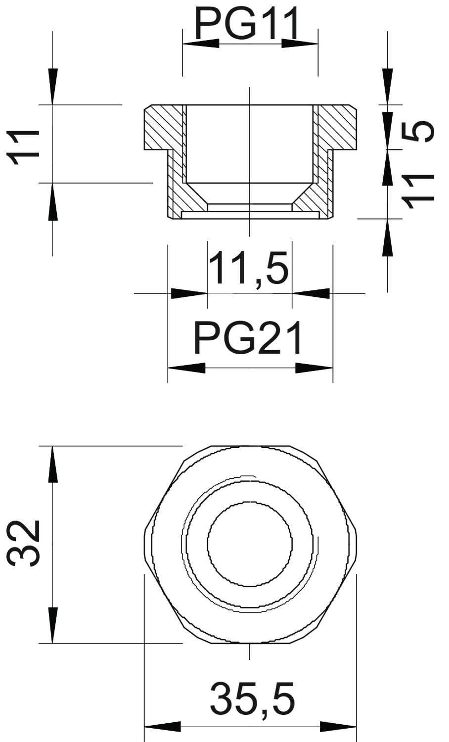dimensione della filettatura PG esterna: