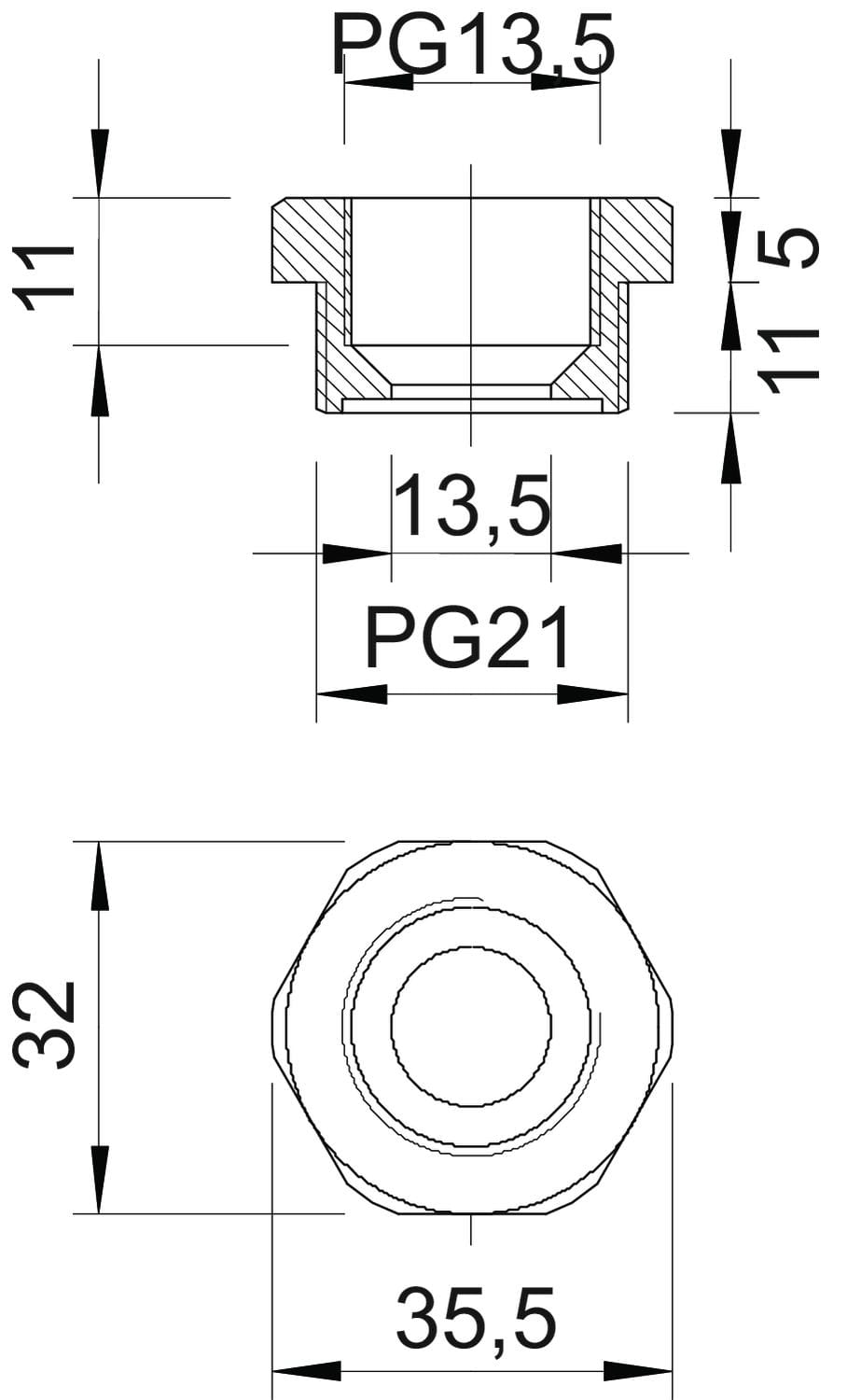 dimensione della filettatura PG esterna: