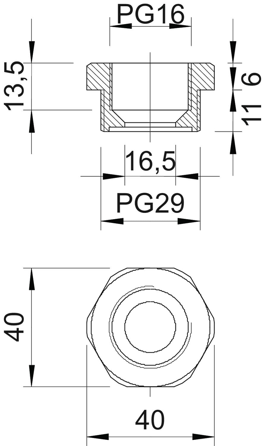 dimensione della filettatura PG esterna: