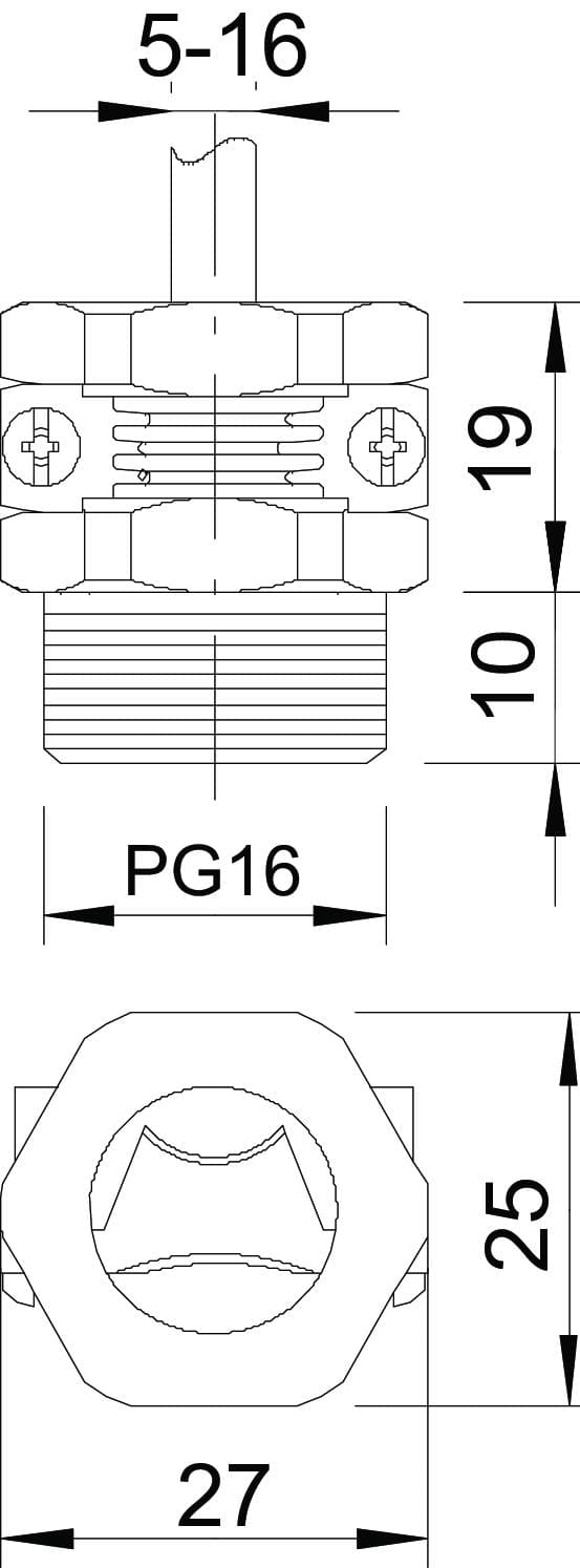 OBO BETTERMANN - 107 vite di pressione con scarico della trazione PG16 poliammide grigio chiaro RAL 7035. 2023164