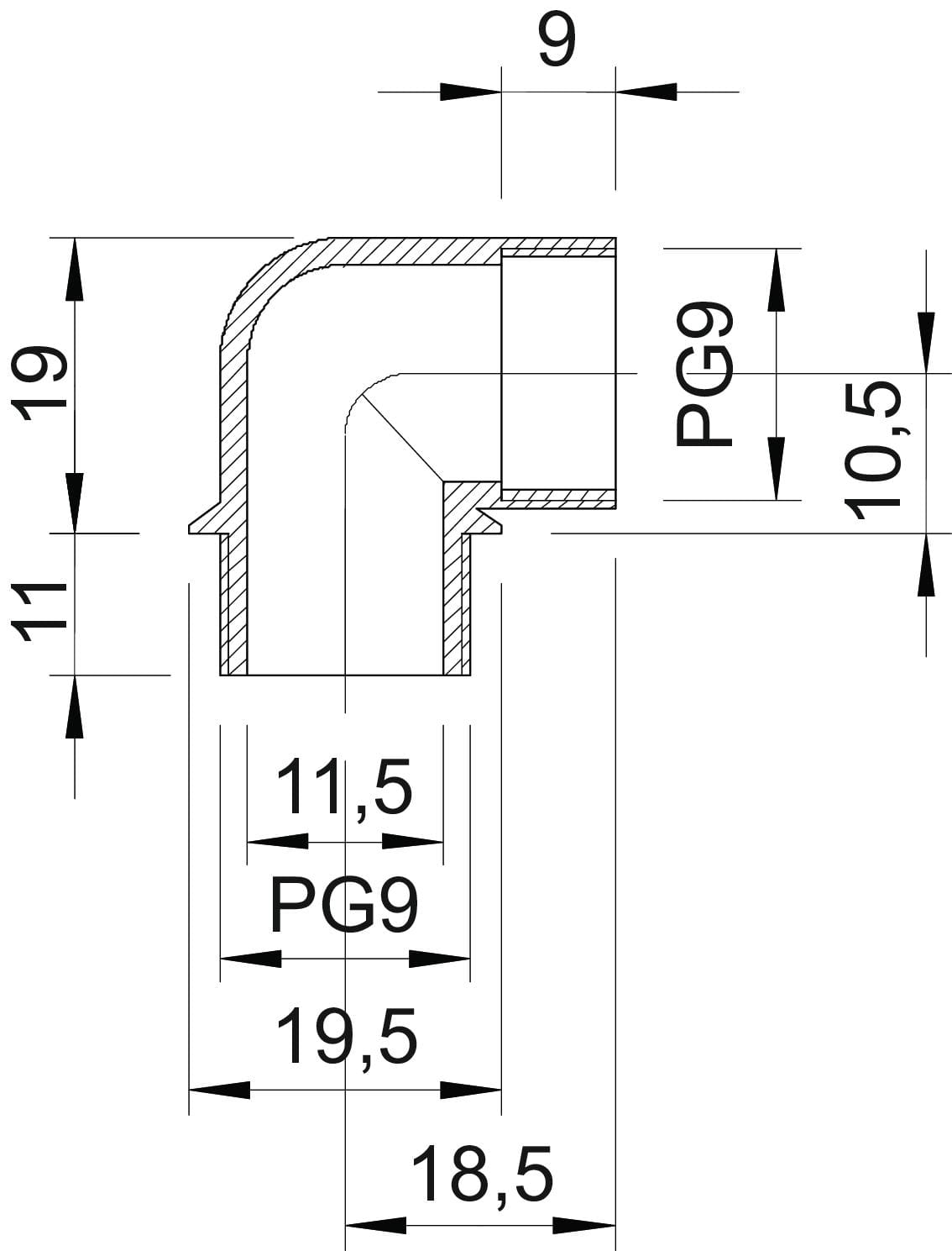dimensione della filettatura PG - 9
