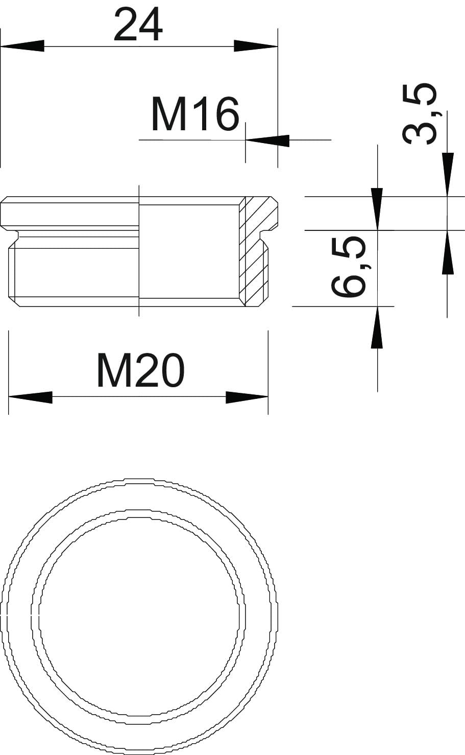 dimensione della filettatura metrica, filettatura interna - 16