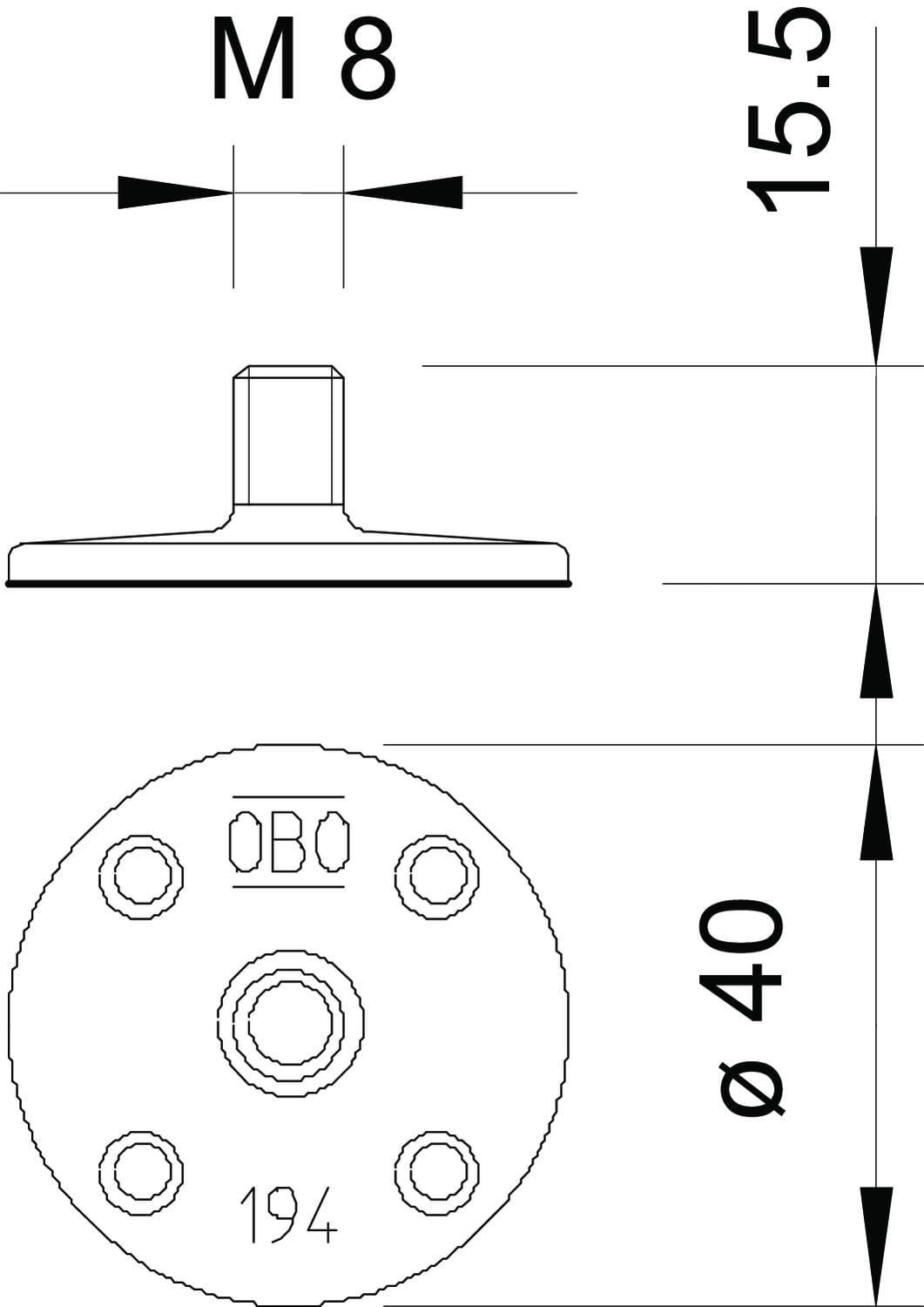 OBO BETTERMANN - 194K Base adesiva con strisce M8 Poliammide grigio. 5207266