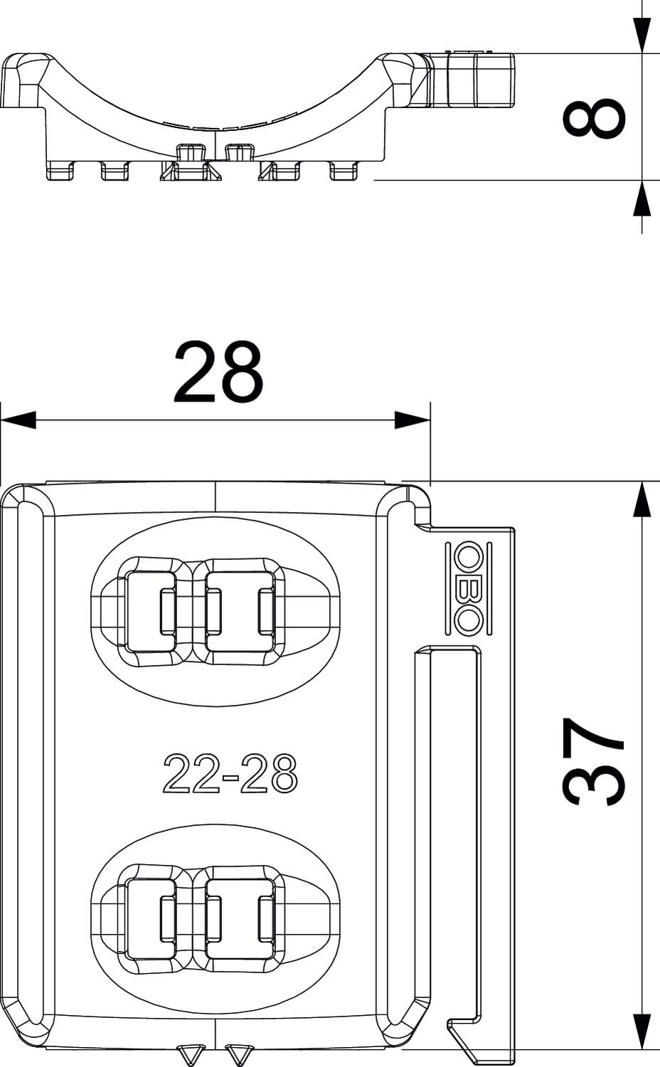 OBO BETTERMANN - 2058uw 28 lgr controcoppa di metallo combinabile con doppia asola 22-28mm polipropilene grigio chiaro ral 7035. 1198028