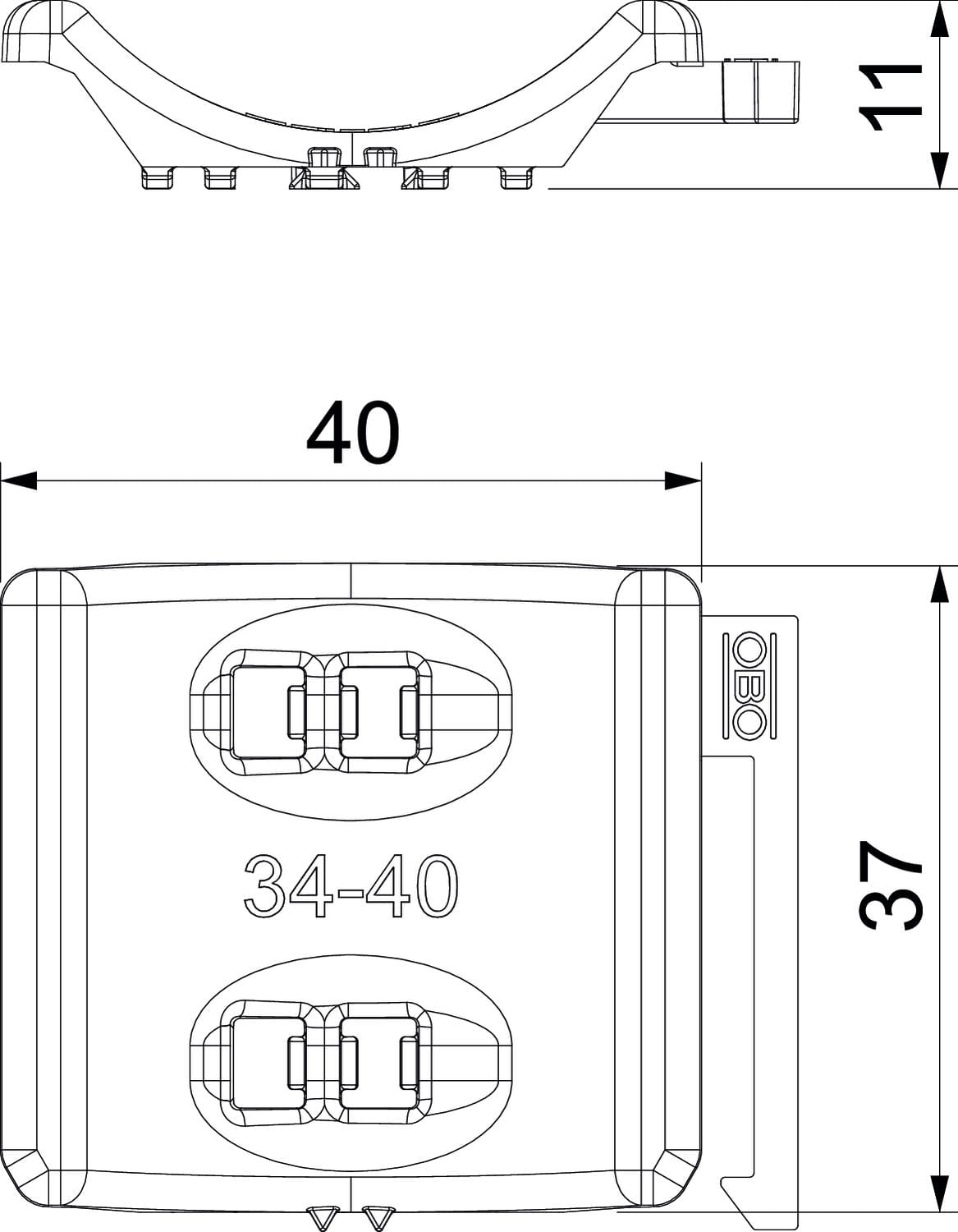 OBO BETTERMANN - 2058uw 40 lgr controcoppa di metallo combinabile con doppia asola 34-40mm polipropilene grigio chiaro ral 7035. 1198040