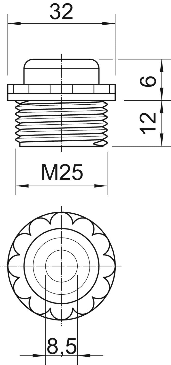 Con membrana perforabile, con foro D pretagliato, ma prima di tutto chiusa. Guarnizione a torsione per avvitamento in filettatura metrica secondo DIN 423.Con filettatura conica a tenuta automatica all'estremità filettata, così da rendere superfluo l'impiego di un anello di tenuta per attacco filettato. Grado di protezione raggiungibile con montaggio accurato IP 54.