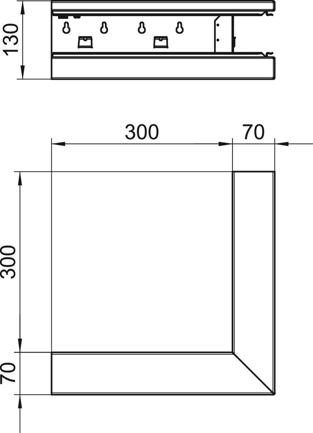 OBO BETTERMANN - Angolo esterno asimmetrico 70x130x300 in acciaio bianco RAL 9010.
