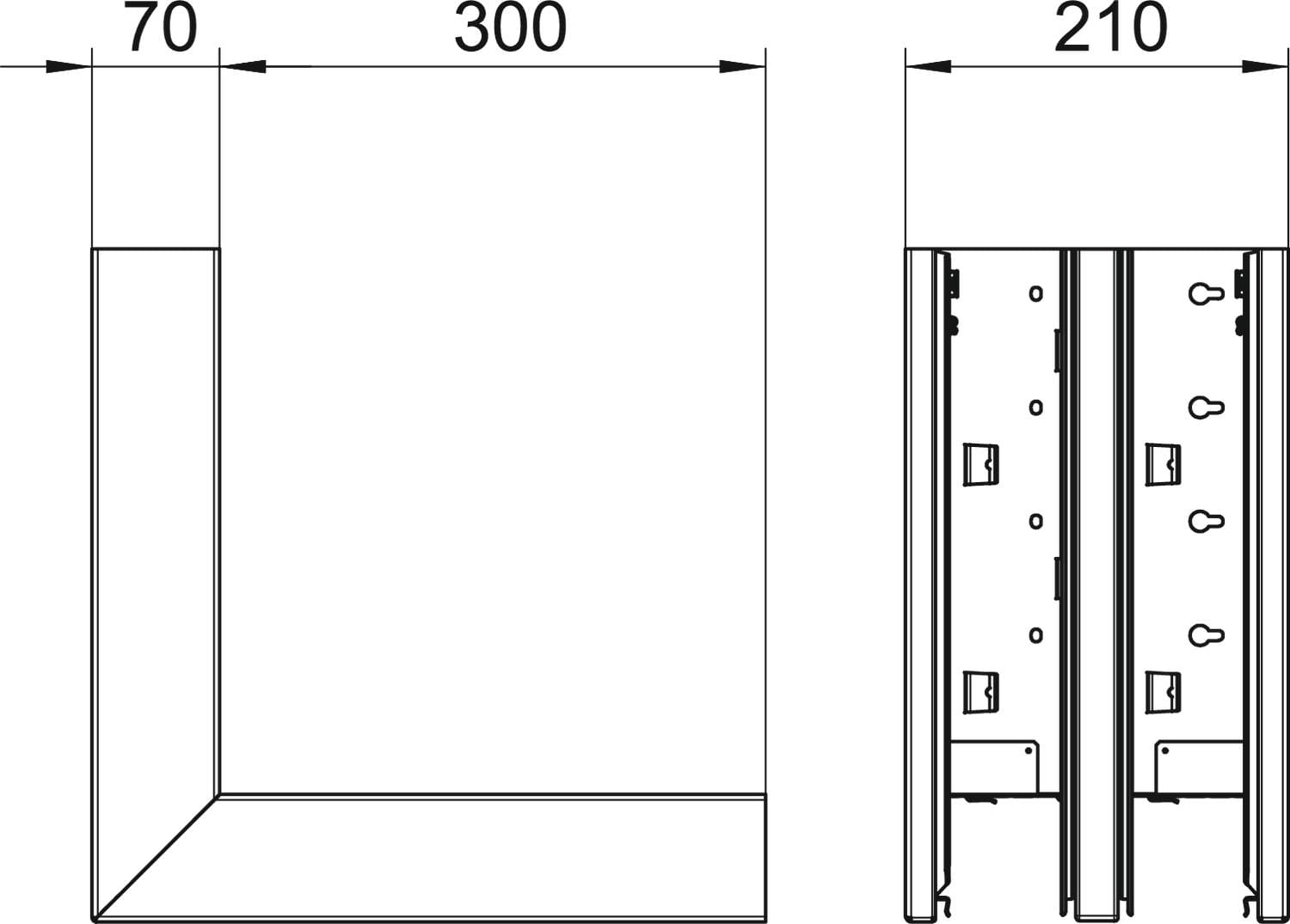 OBO BETTERMANN - Angolo esterno simmetrico 70x210x300 in Acciaio bianco RAL 9010.