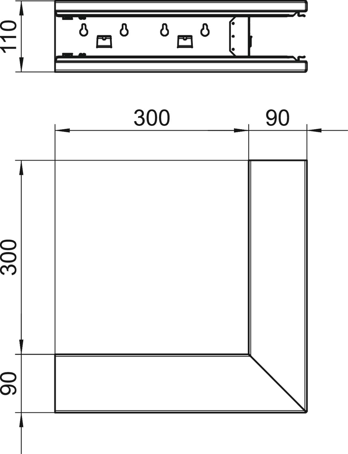 OBO BETTERMANN - Angolo esterno simmetrico 90x110x300 in acciaio bianco RAL 9010.