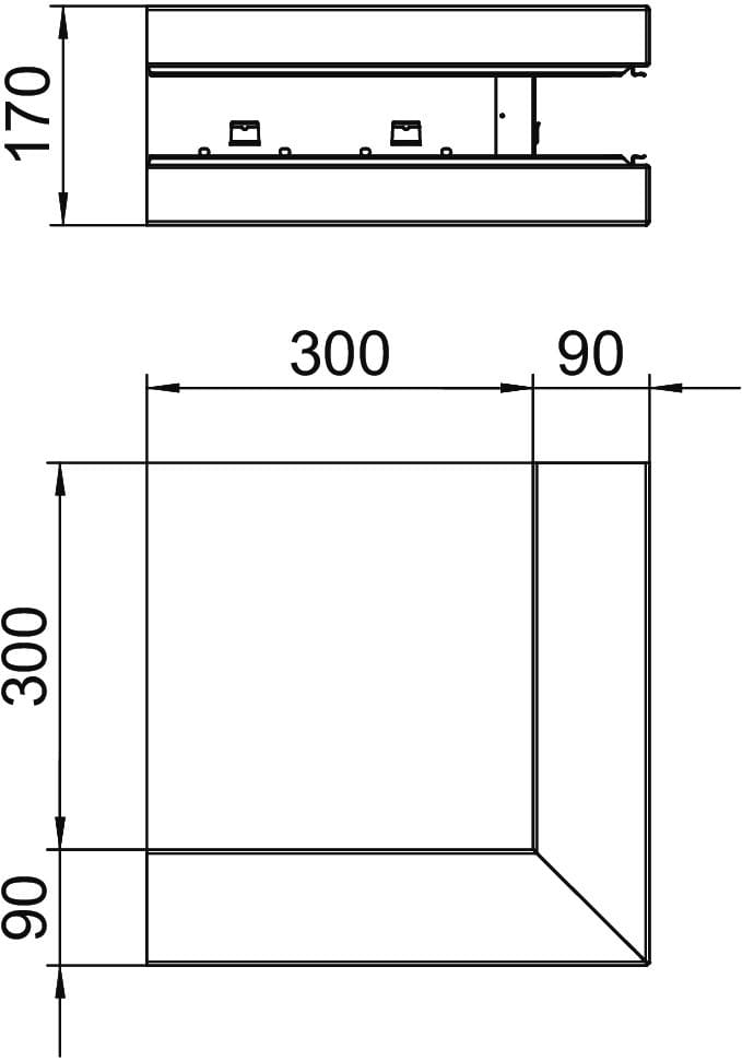 OBO BETTERMANN - Angolo esterno simmetrico 90x170x300 in acciaio bianco RAL 9010.