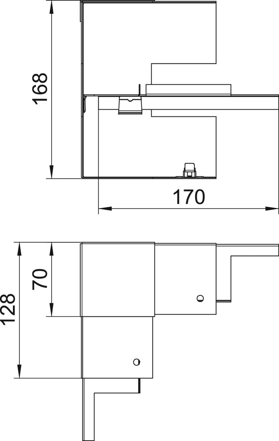 OBO BETTERMANN - Angolo interno 70x170x128 in acciaio bianco RAL 9010, design semplice e simmetrico.