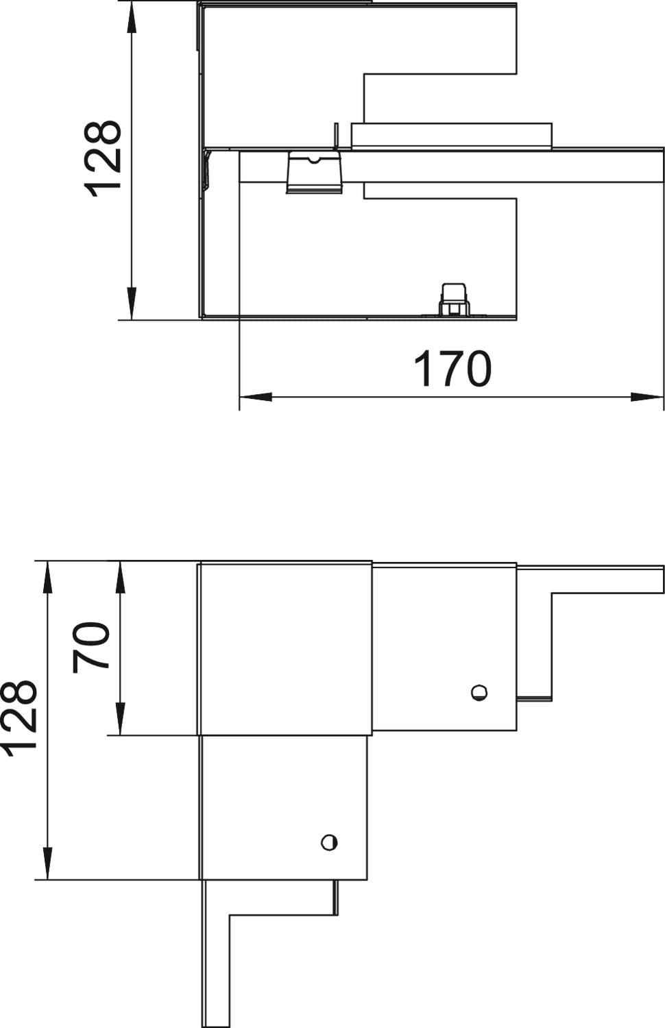 OBO BETTERMANN - Angolo interno asimmetrico 70x130x128 in Acciaio bianco RAL 9010.