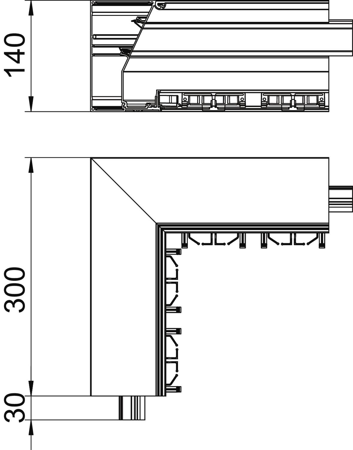 OBO BETTERMANN - Angolo interno, canale design senza coperchio 114x140x300 alluminio anodizzato.