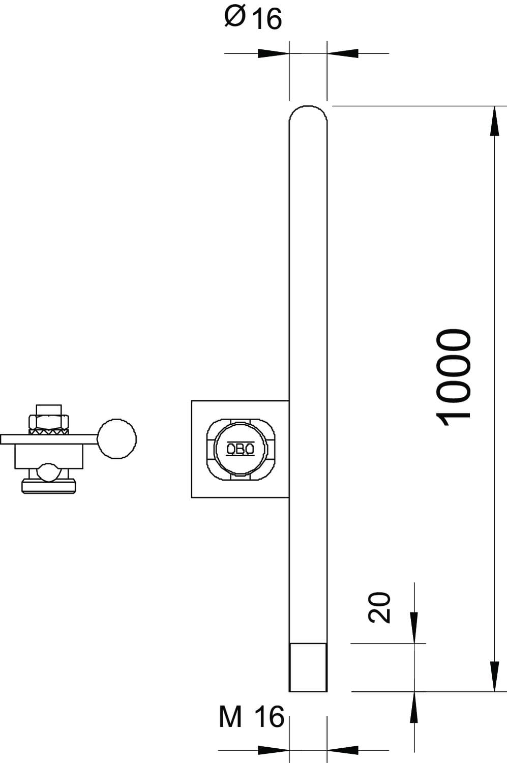 OBO BETTERMANN - Asta captazione con aggancio aletta 1000mm in Acciaio zincato a caldo per immersione. 5402808