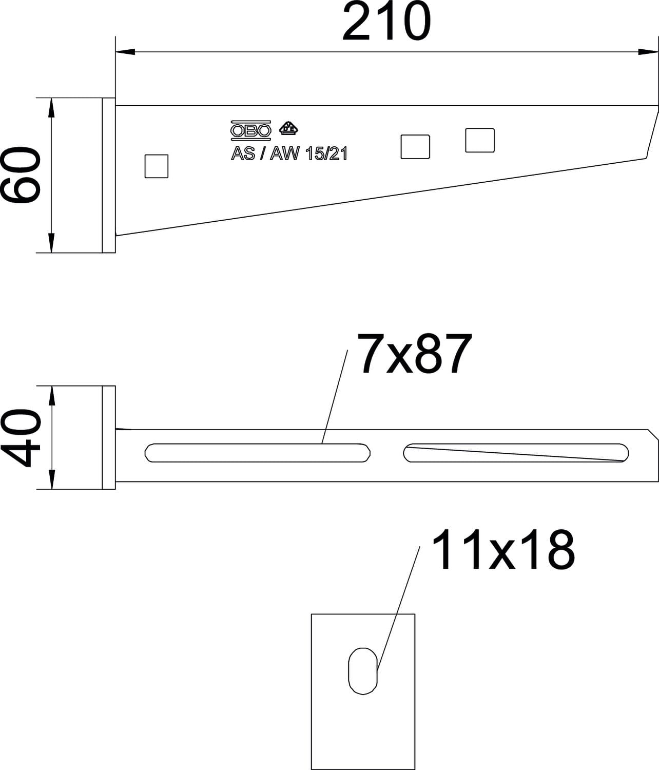OBO BETTERMANN - AW 15 21 Mensola a parete con piastra di testa saldata B210mm Acciaio zincato a caldo per immersione. 6420680