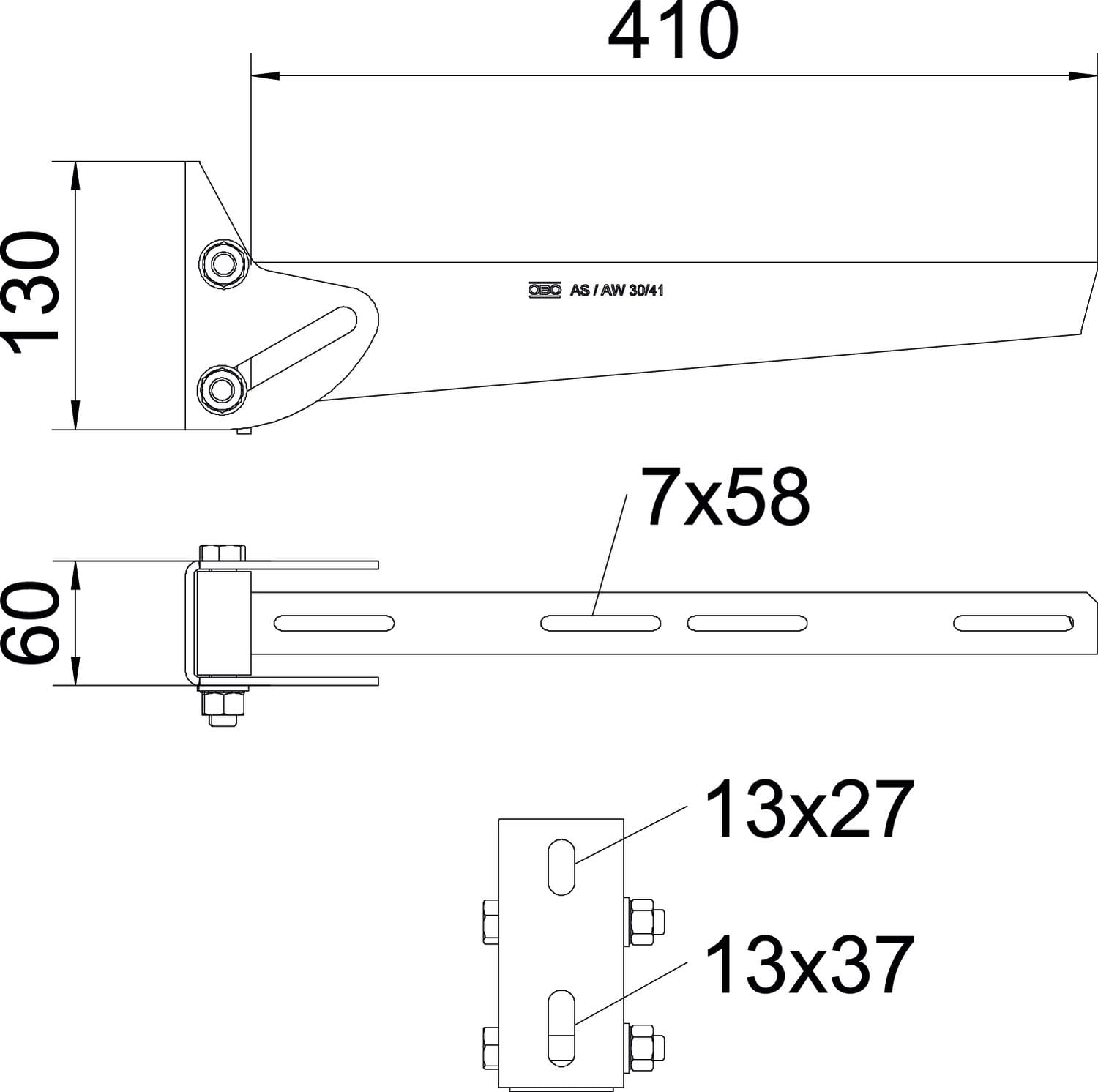 OBO BETTERMANN - AWV 41 FT Mensola Regolabile Staffa a Parete Variabile B410mm Acciaio Zincato Caldo Immersione.