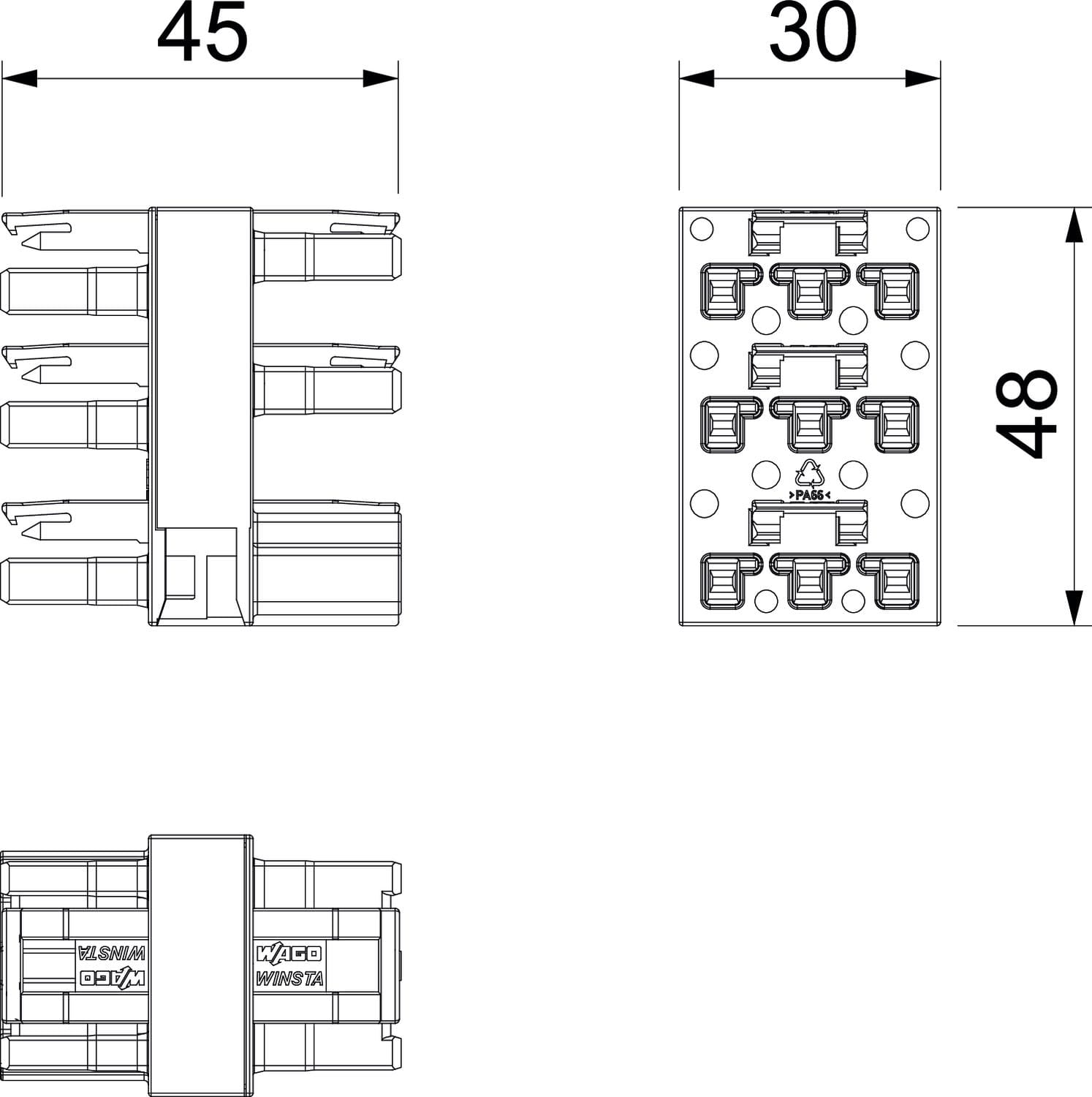 OBO BETTERMANN - Blocco di distribuzione 3 poli, 1I-5O, WINSTA 46x30x48 Poliammide bianco.