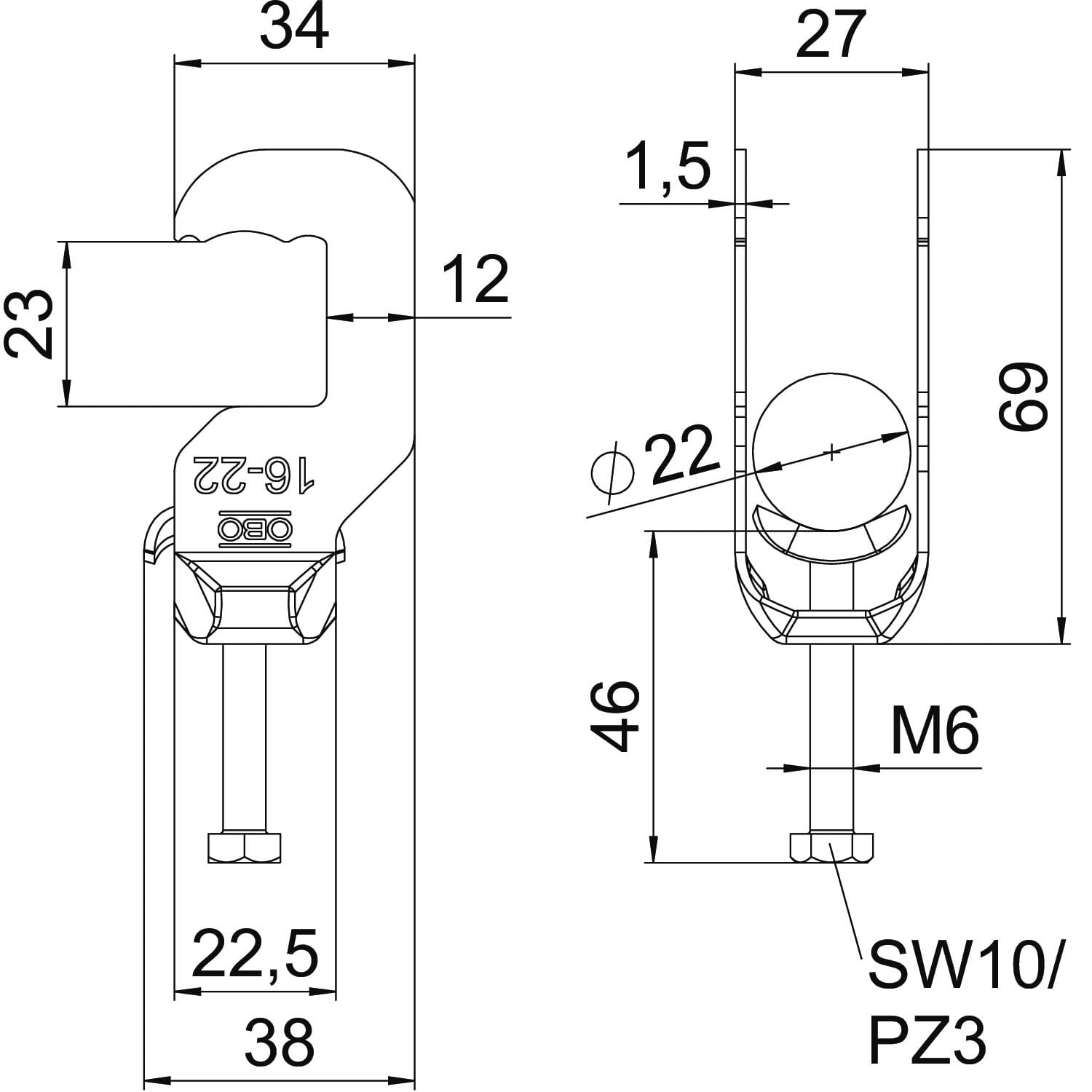 OBO BETTERMANN - Bs-Rs1-M-22 Ft Staffa Reggicavo Clamp Clip 2056 16-22 Acciaio Zincato Caldo Immersione. 1158349