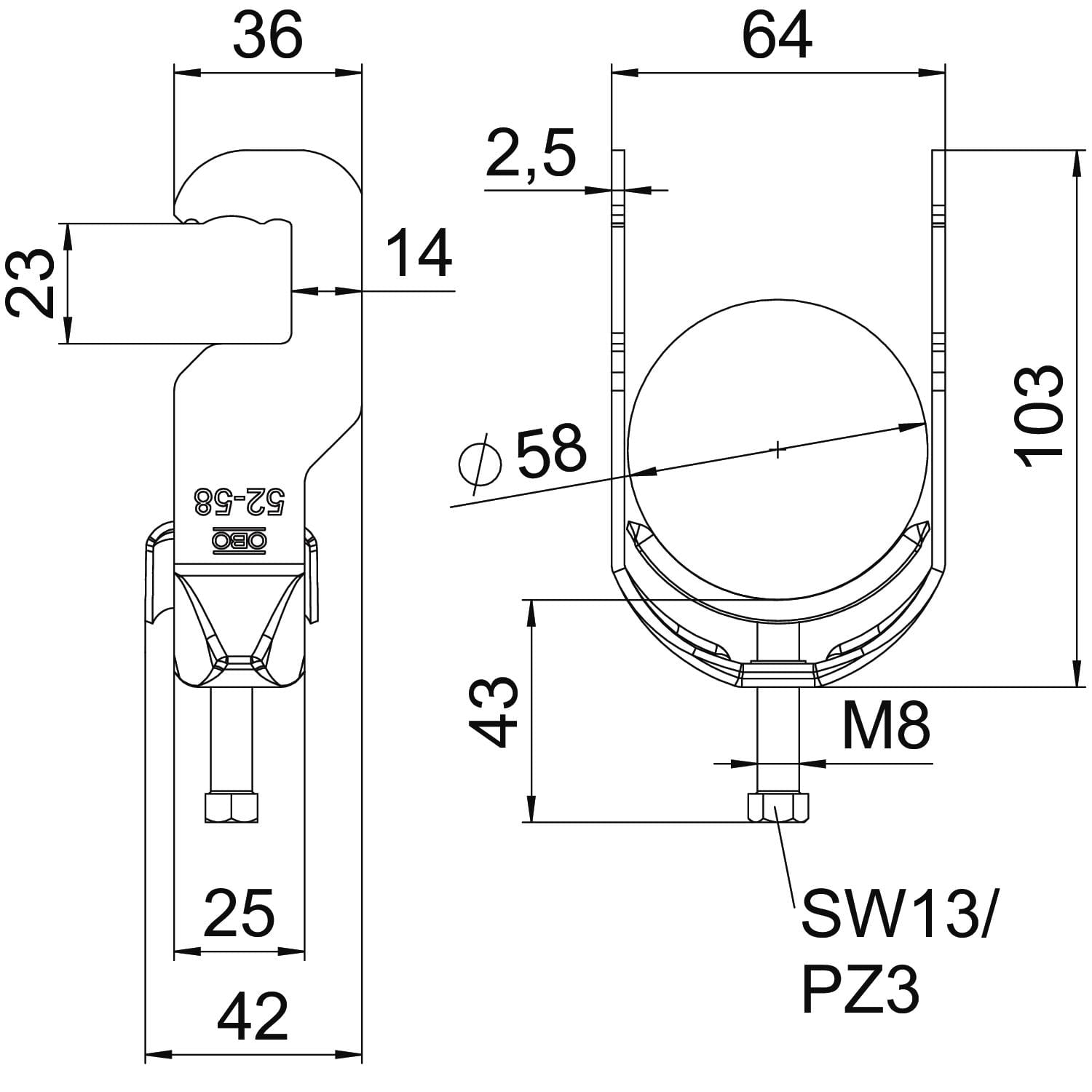 OBO BETTERMANN - Bs-Rs1-M-58 Ft Staffa Reggicavo Clamp Clip 2056 52-58 Acciaio Zincato Caldo Immersione.