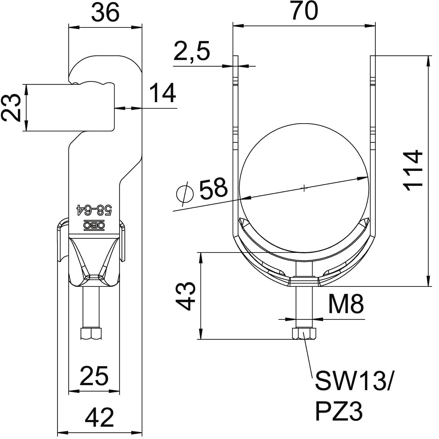 OBO BETTERMANN - Bs-Rs1-M-64 Ft Staffa Reggicavo Clamp Clip 2056 58-64 Acciaio Zincato Caldo Immersione. 1158377
