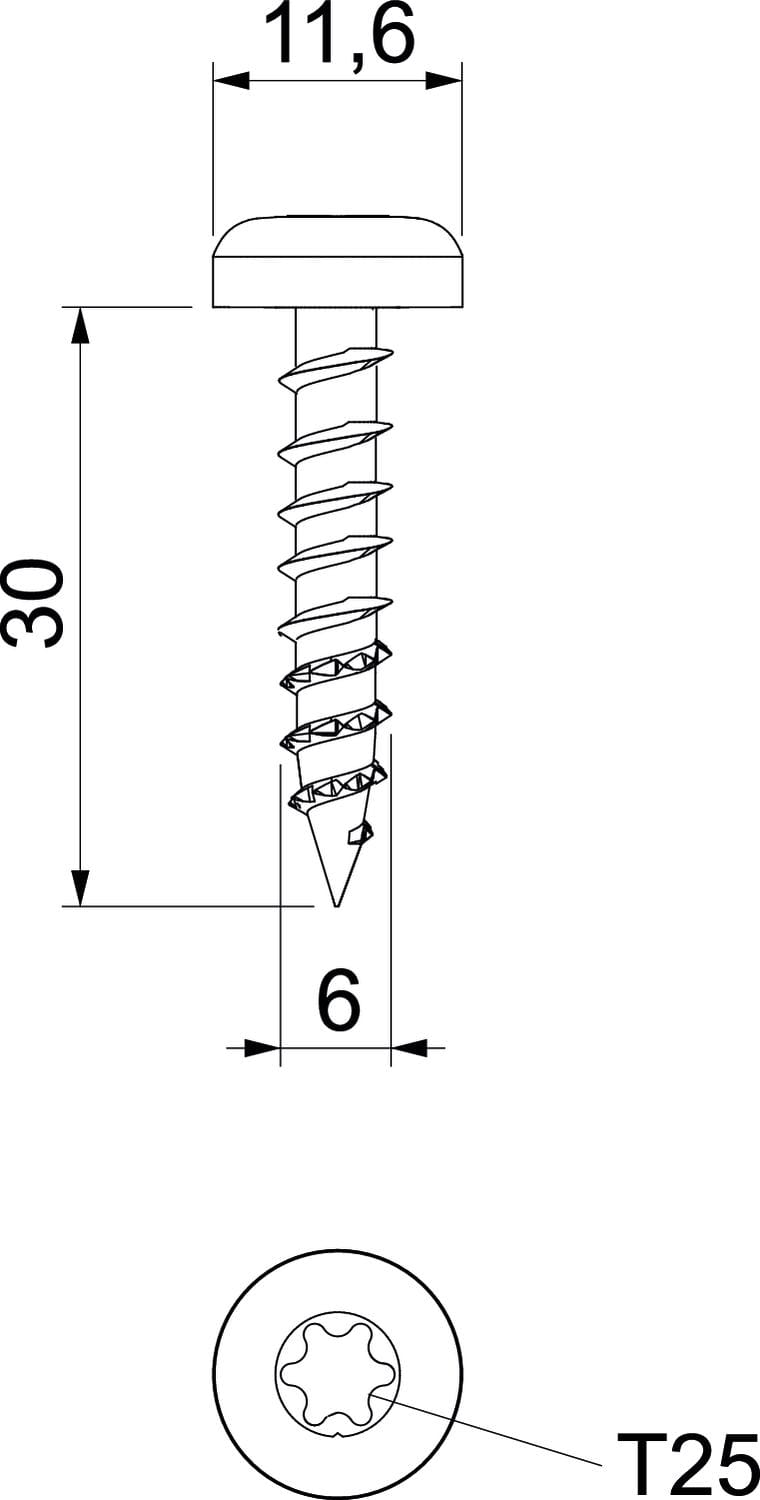 Vite con alette speciali per canale PYROLINE® Con S, per il fissaggio di pareti divisorie per cavi nel canale.