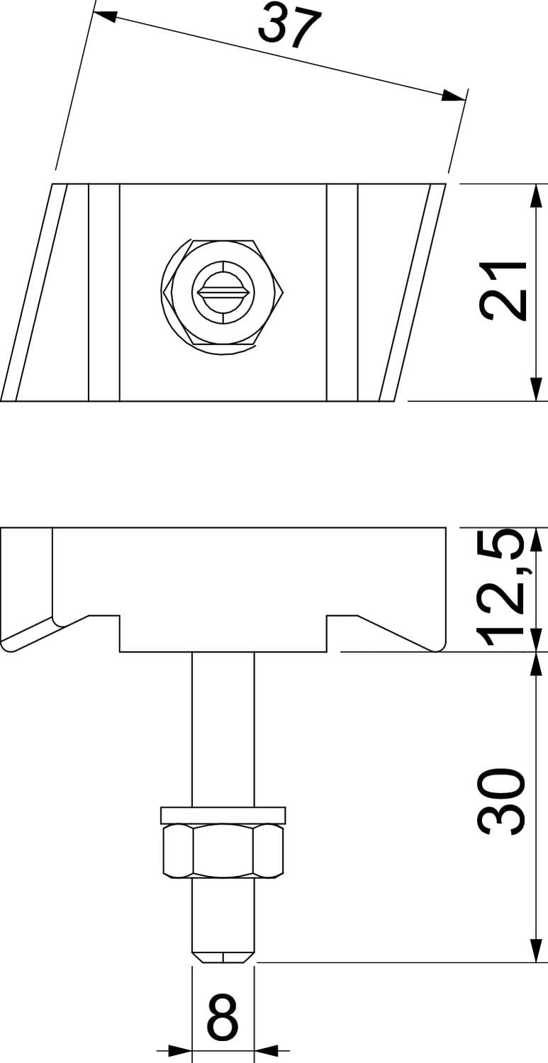 OBO BETTERMANN - Bullone testa a martello MS5030 M8x30mm Acciaio Lamella di zinco per profilato. 1148210